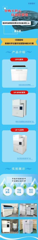 目前,優(yōu)浦達(dá)生產(chǎn)的UP系列實(shí)驗(yàn)室廢水處理系統(tǒng)主要有:UPFS系列、UP-NPMF系列、UPYL系列等一體化實(shí)驗(yàn)室廢水處理系統(tǒng)。自動化程度高、占地面積小、操作管理簡便且無需專人值守,并且廣泛適用于高等院校、科研院所、環(huán)境檢測、疾控中心、石油化工、醫(yī)療機(jī)構(gòu)、企業(yè)等行業(yè)實(shí)驗(yàn)室、化驗(yàn)室廢水處理。